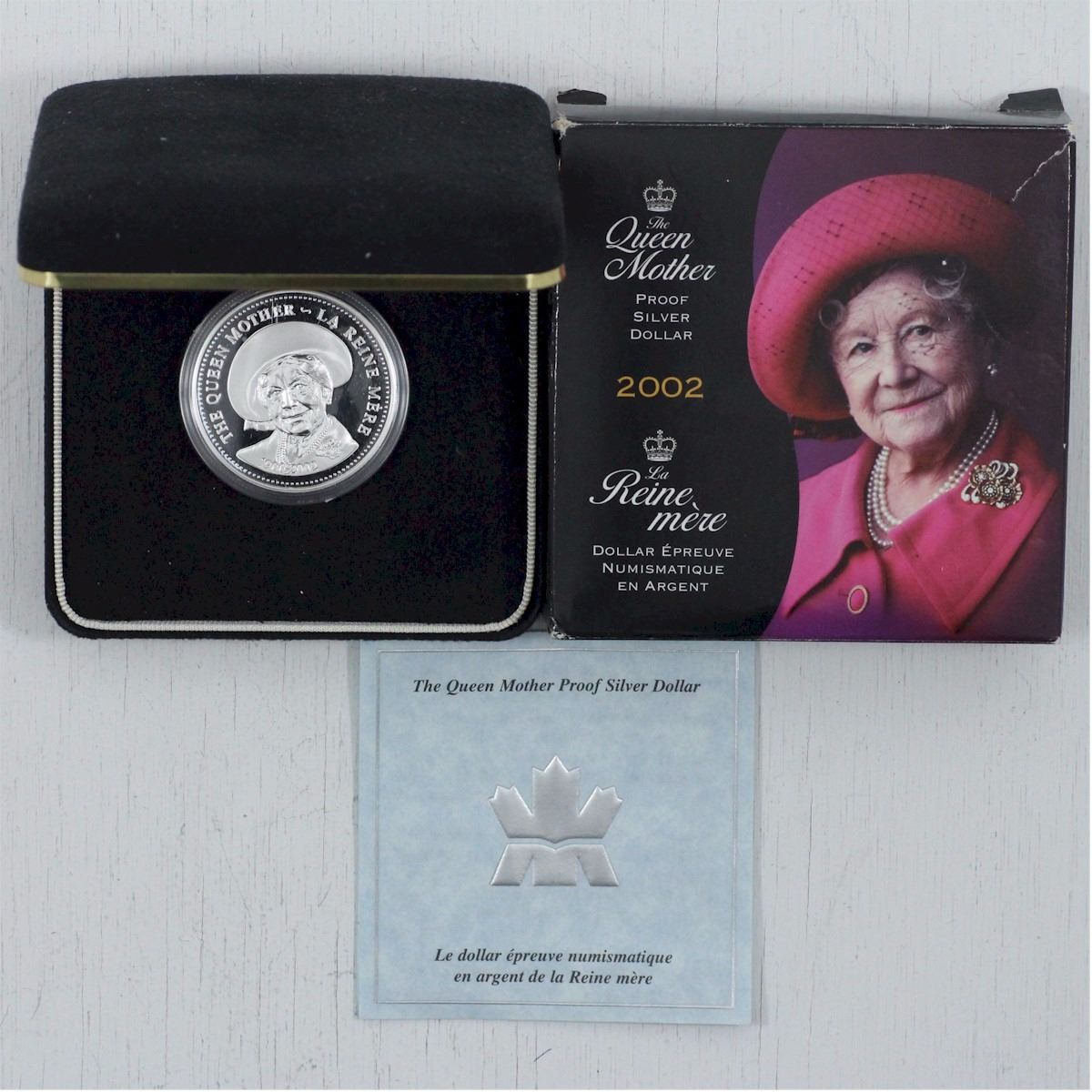 2002 Canada Queen Mother Proof Silver Dollar (tattered outer box). Buyers Premium will be added on all items as per our terms of sale. We accept Paypal, Credit Card, E-Transfer Payments, Cheque or Money Orders (there is an additional 3% fee for using Paypal or Credit Card). All invoices will be emailed immediately following the auction, please contact us if you would like to pay by credit card or receive a new revised lower total for mailing in payment or sending an e-transfer (3% discount). All Items Are Sold "AS IS", no returns