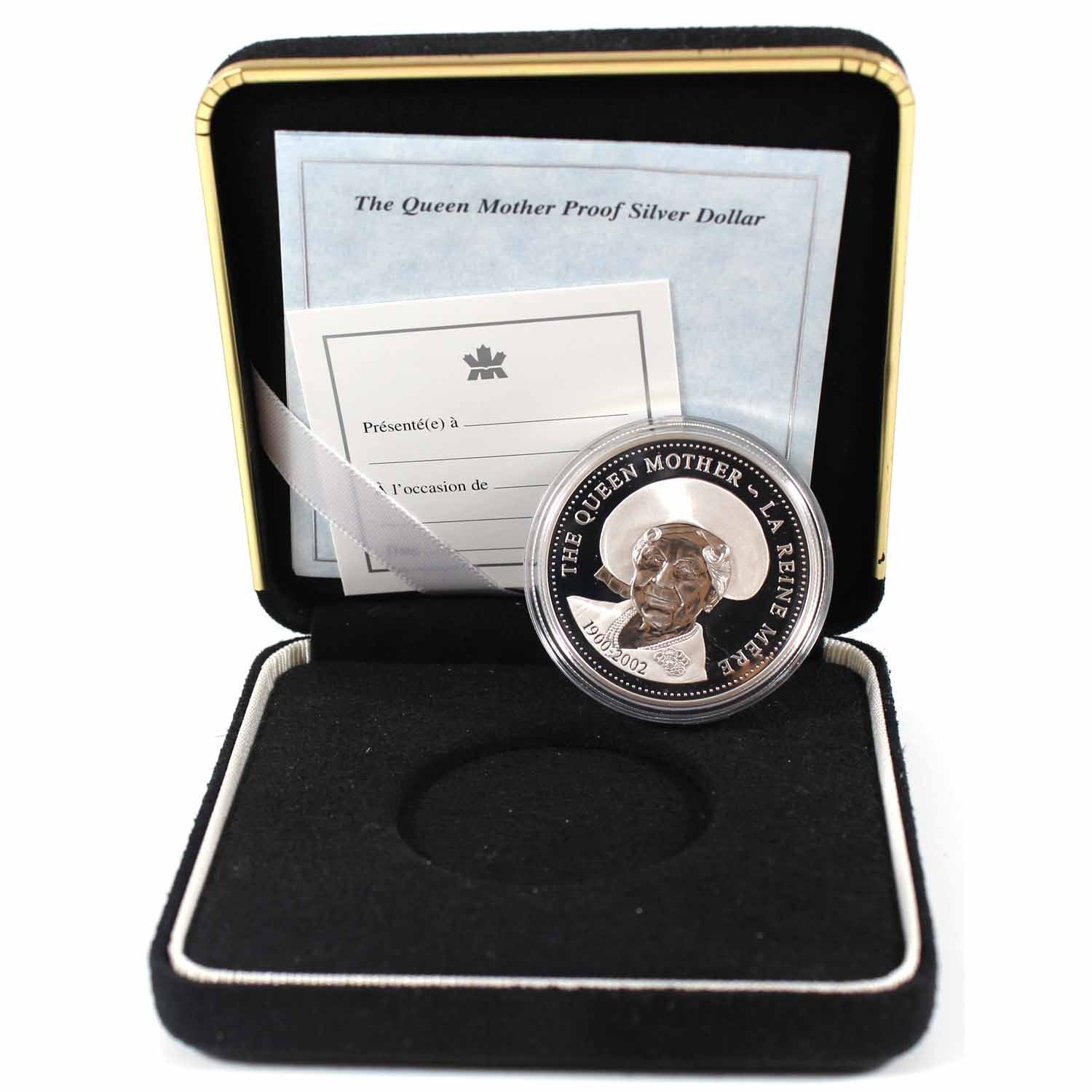 2002 Canada Queen Mother Proof Sterling Silver Dollar (missing outer sleeve).