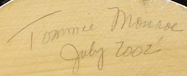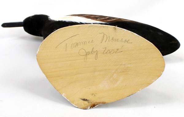 2002 Carved Wood Sandpiper by Tommie Monroe, measures 12'' x 8'' x 4'' and is signed on the bottom