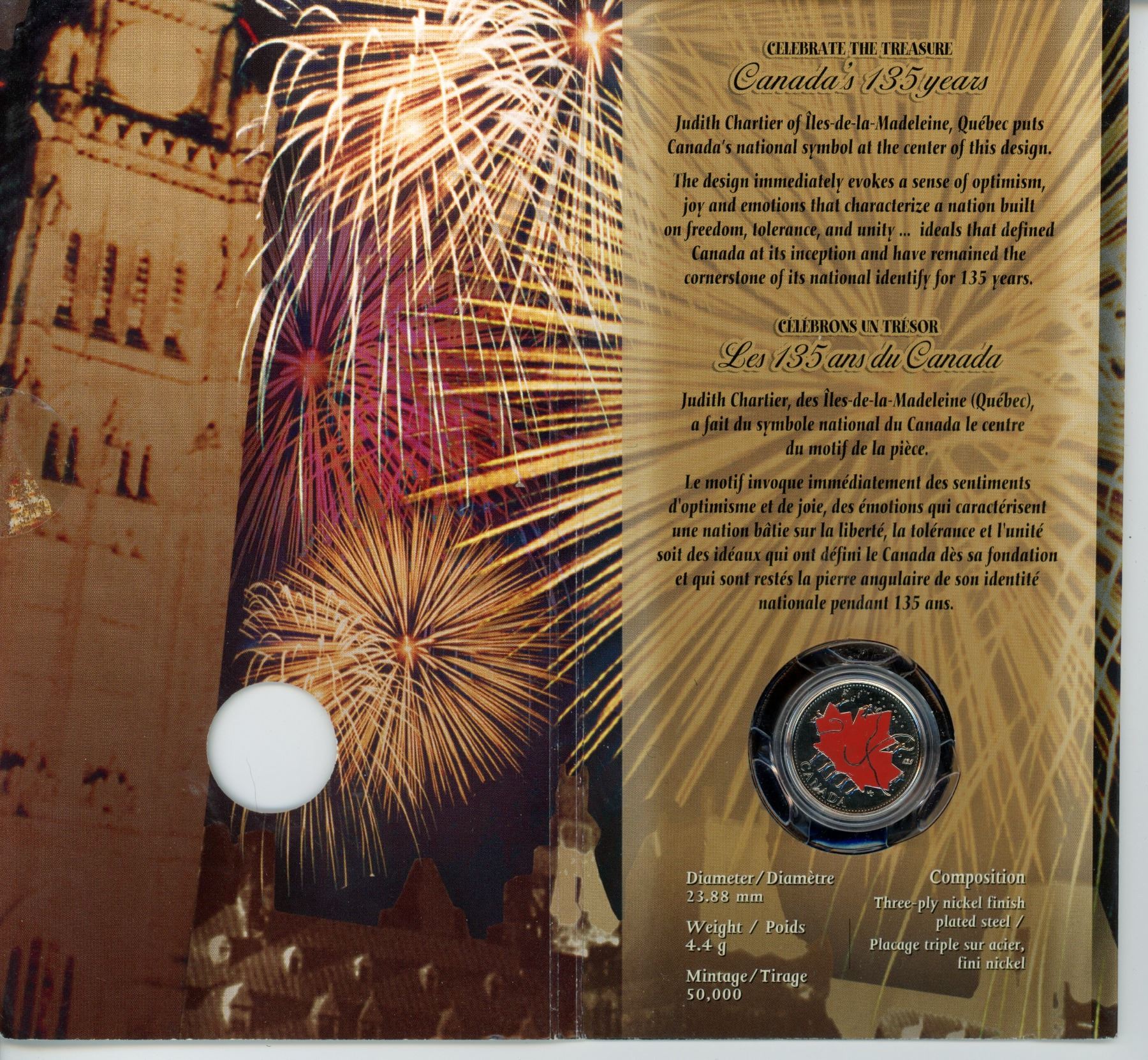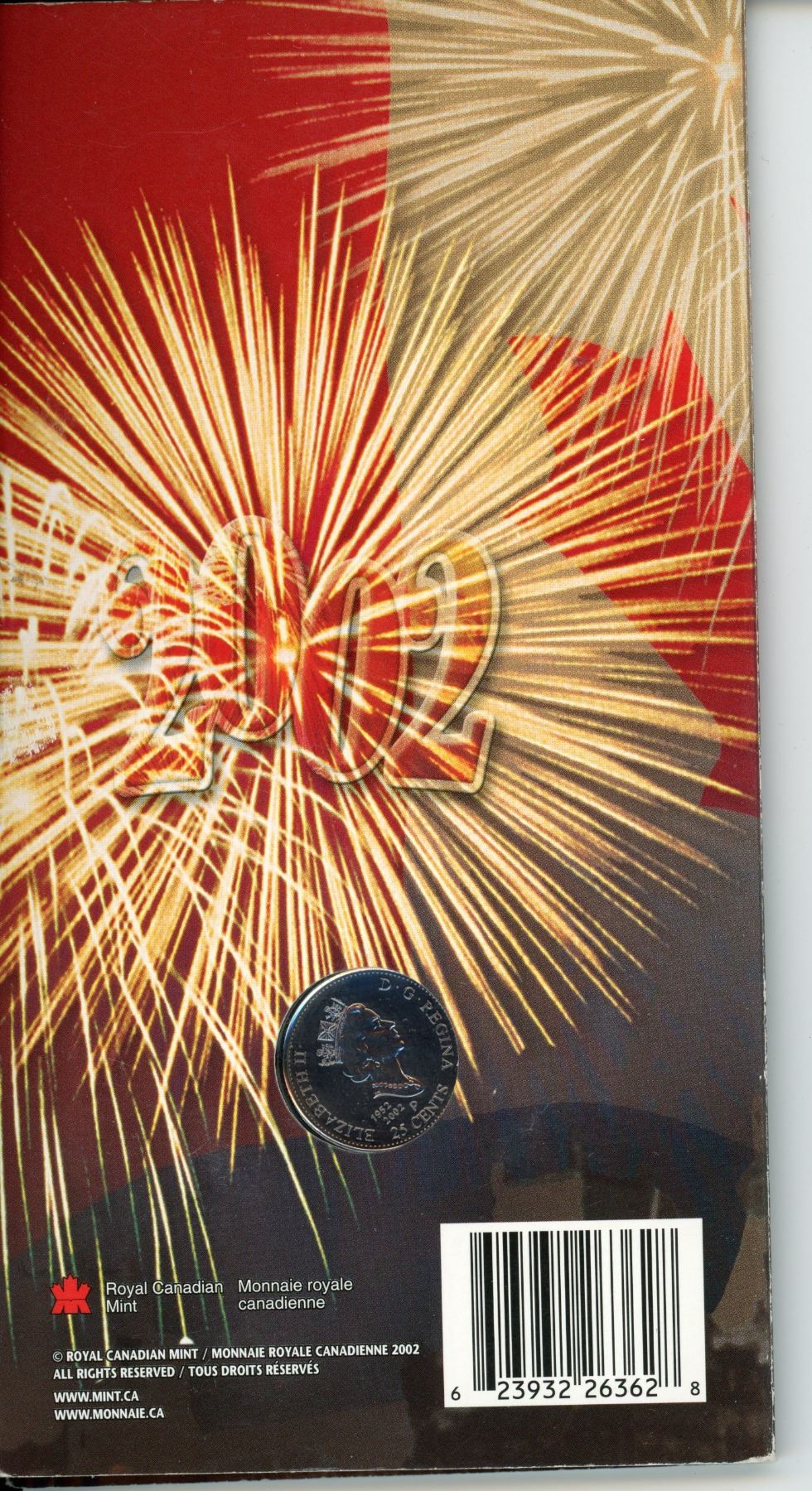2002 Colourized Canada Day 25 Cents. Housed in its original folder of issue.