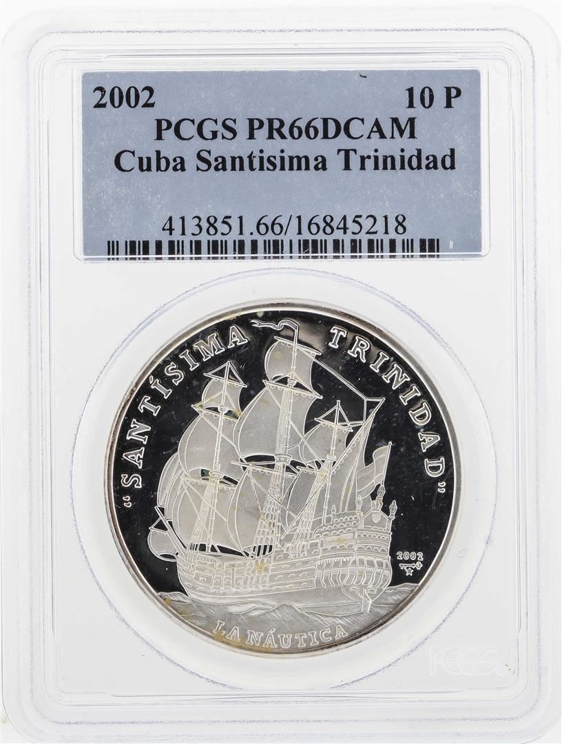 One 2002 Cuba Santisima Trinidad 10 Pesos Silver Coin PCGS PR66DCAM. PCGS Graded.