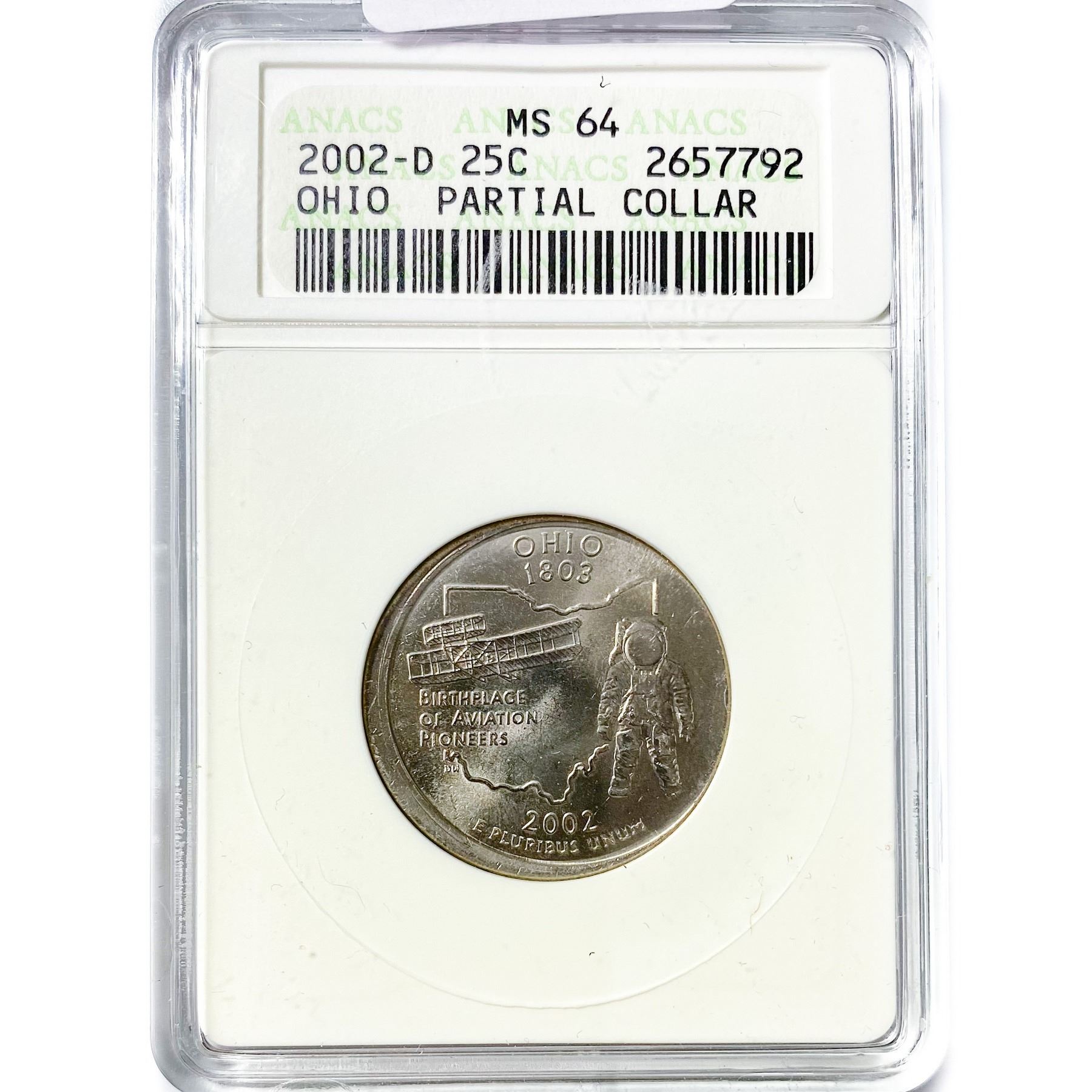 2002-D Ohio Quarter ANACS MS64 Partial Collar