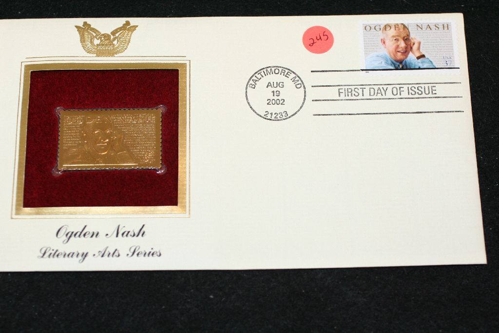 2002 First Day of Issue 22K Gold Replica Stamp W/Postal Stamp; Ogden Nash Literary Arts Series
