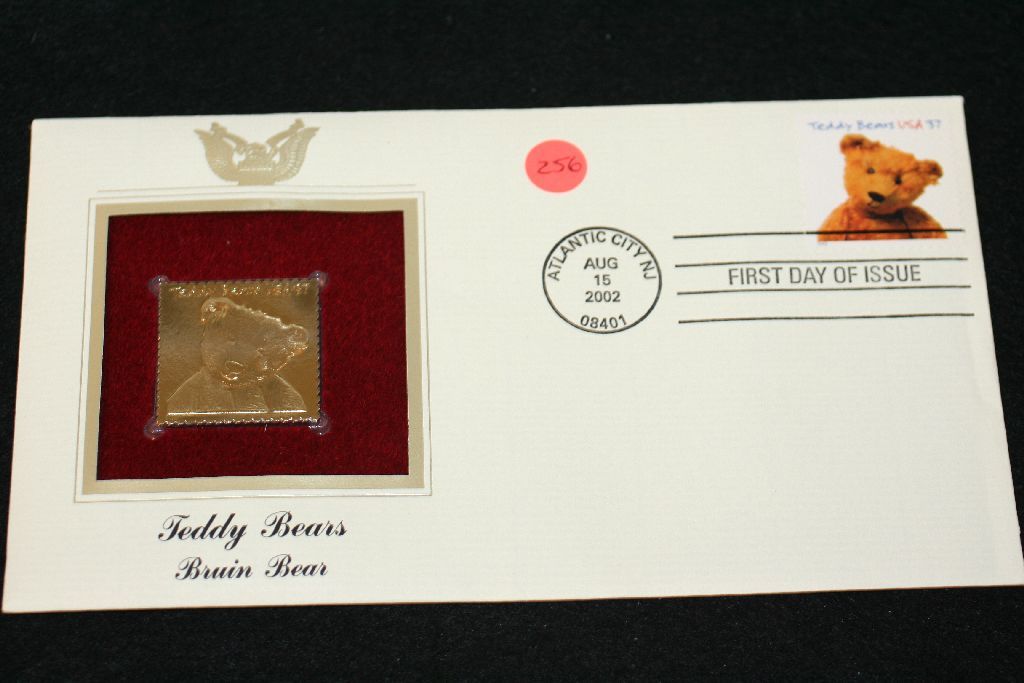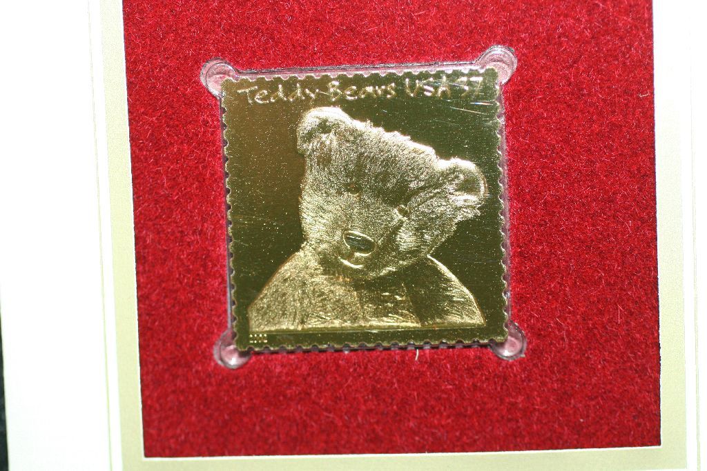 2002 First Day of Issue 22K Gold Replica Stamp W/Postal Stamp; Teddy Bears Bruin Bear
