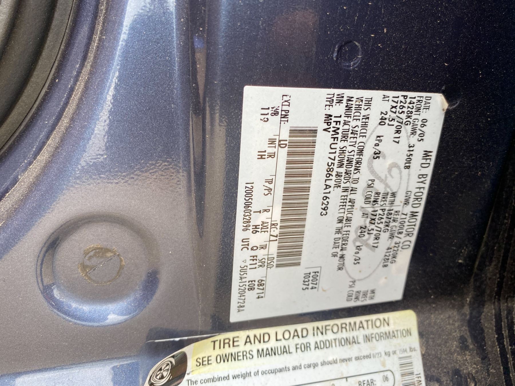 VIN:1FMFU17586LA16293