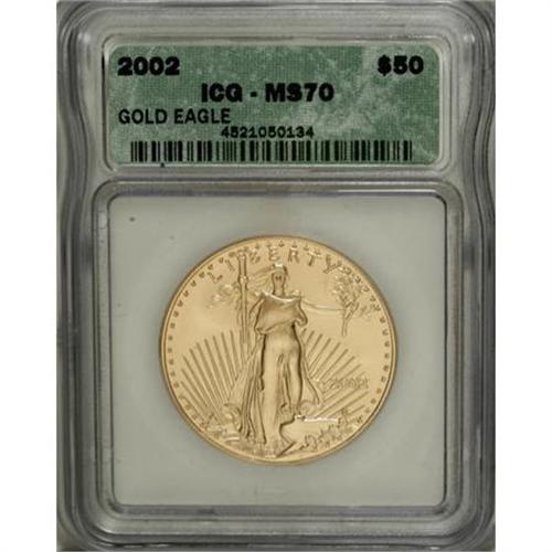 2002 G$50 One-Ounce Gold Eagle MS70 ICG