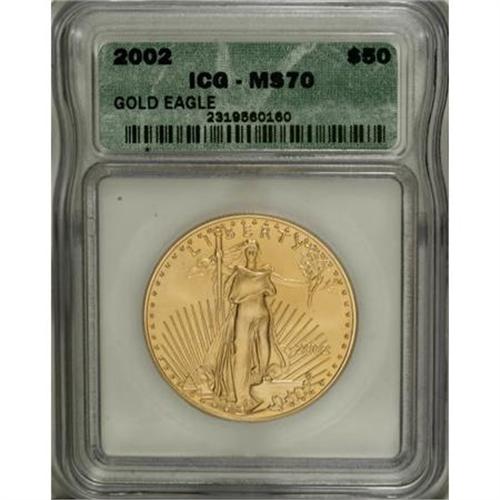 2002 G$50 One-Ounce Gold Eagle MS70 ICG
