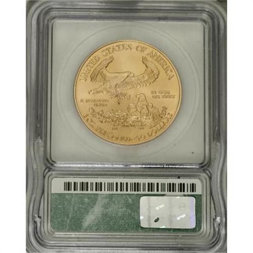 <B>2002 G$50 One-Ounce Gold Eagle MS70 ICG.</B></I> NGC Census: (0/0). PCGS Population (16/0). Numismedia Wsl. Price for NGC/PCGS coin in MS70: $1,100. (#9963)<BR><BR><b>Shipping:</b> Coins & Currency (<a target="_blank" href="http://www.heritageauctions.com/common/shipping.php">view shipping information</a>)