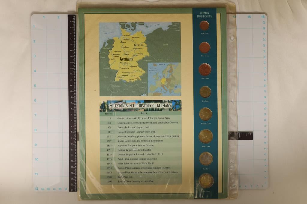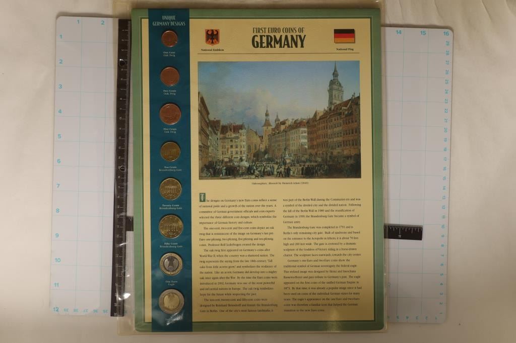 INFO CARD IN PLASTIC SLEEVE. 1ST EURO COINS OF GERMANY