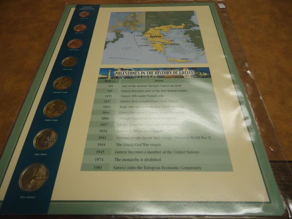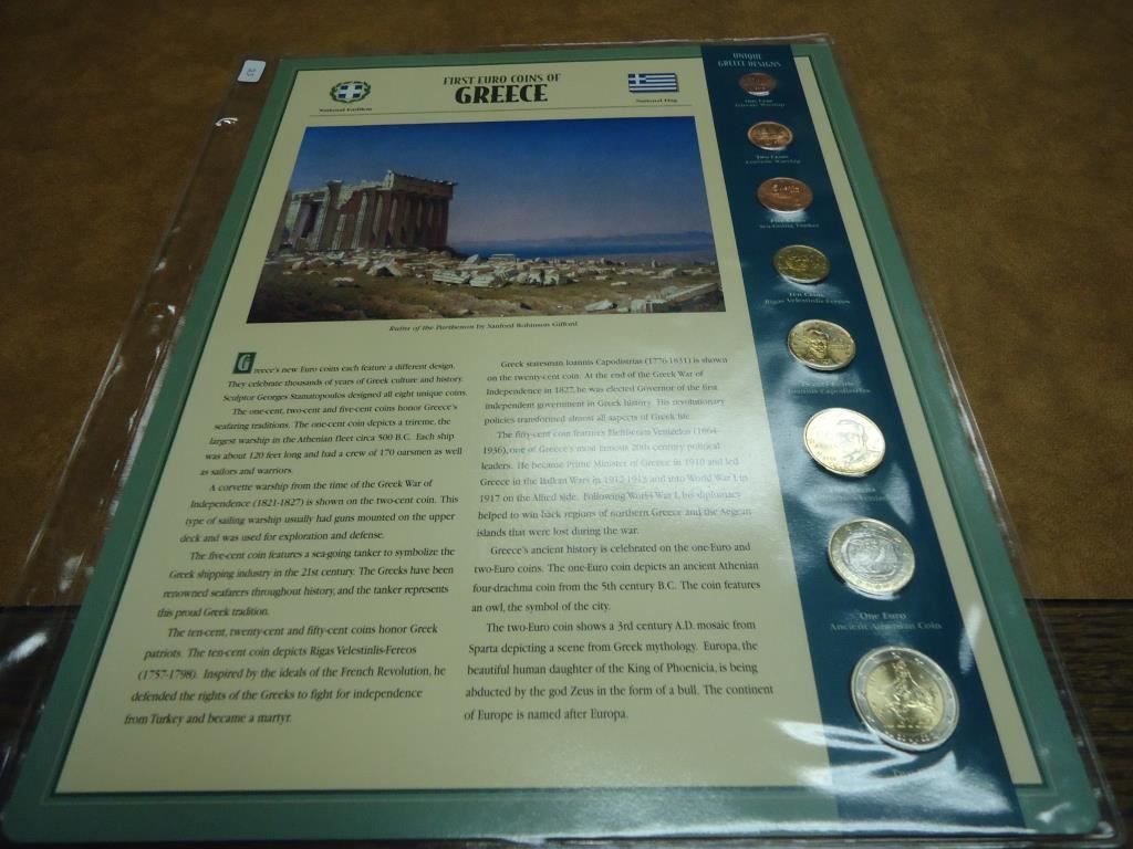 2002 GREECE 1ST EURO COINS UNC ON CARD AS SHOWN