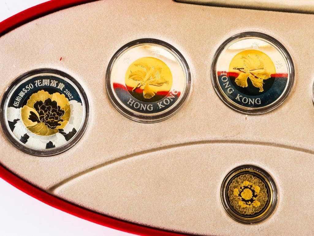 2002 Hong Kong The Five Blessings Set with 5 Silver Coins and one Gold Medallion (made by the Royal Canadian Mint) .25 OZ .9999 Fine Gold & 5 x 1 oz. ASW Medallions