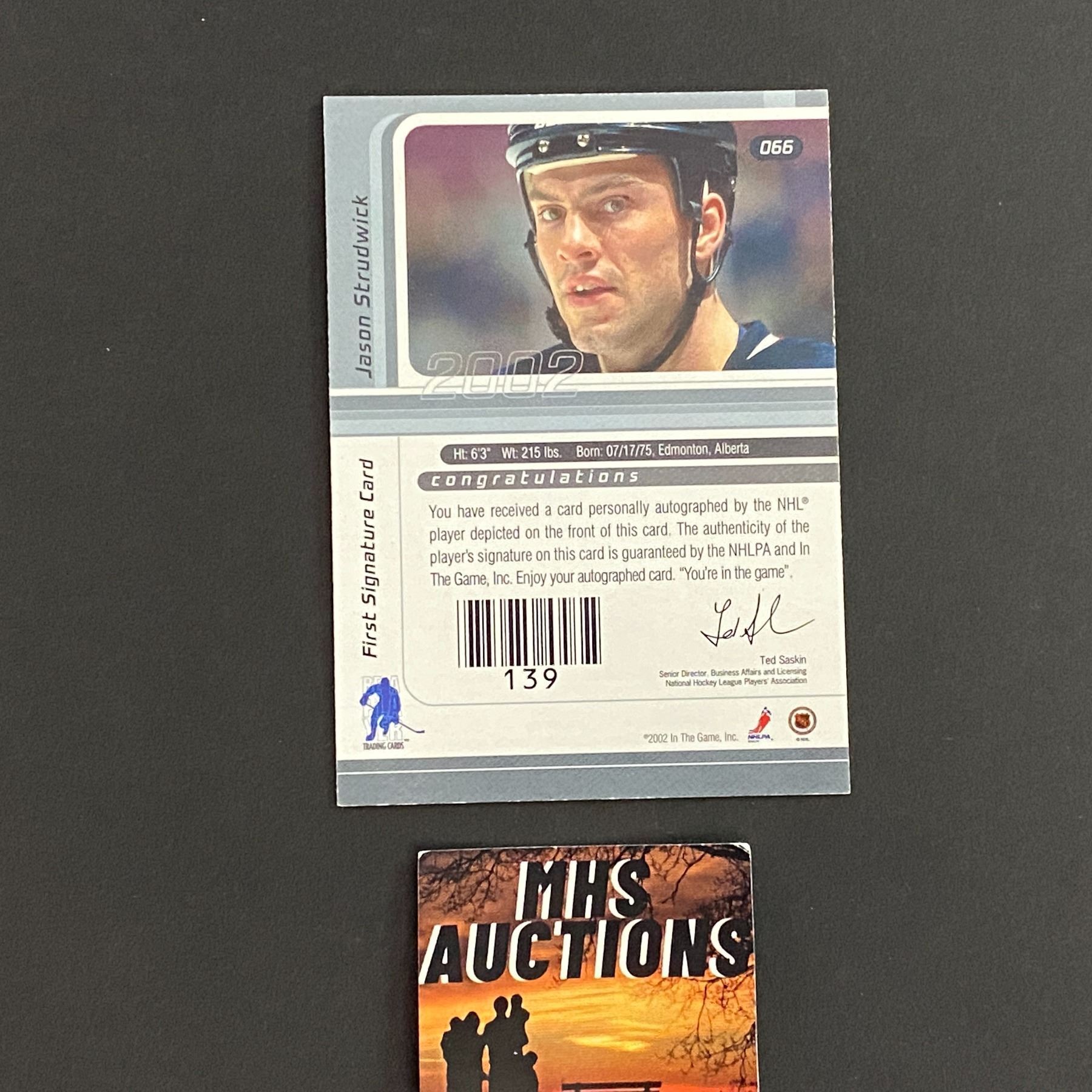2002 IN THE GAME JASON STRUDWICK AUTOGRAPH HOCKEY CARD