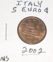 2002 ITALY 5 EURO CENT COIN *RARE HARD TO FIND MS HIGH GRADE* COIN CAME OUT OF PRIVATE EURO COIN COLLECTION!! ***Coin, Currency & All Items Listed in this auction - Grades, Conditions and Values are not Safe Deposit Coins LLC Responsibilty. Grades, Condition and Values are determined by Consigner(s) & Buyers ONLY***