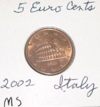 2002 ITALY 5 EURO CENTS *RARE MS HIGH GRADE!! COIN CAME OUT OF SAFE!! ***Coin, Currency & All Items Listed in this auction - Grades, Conditions and Values are not Safe Deposit Coins LLC Responsibilty. Grades, Condition and Values are determined by Consigner(s) & Buyers ONLY