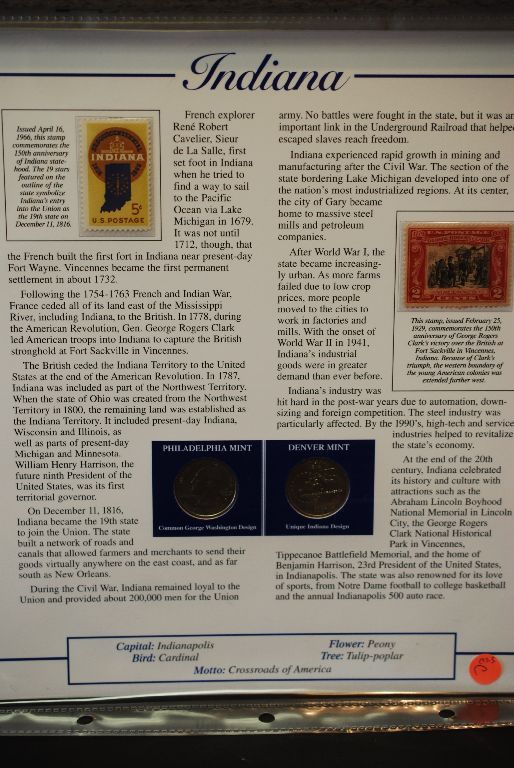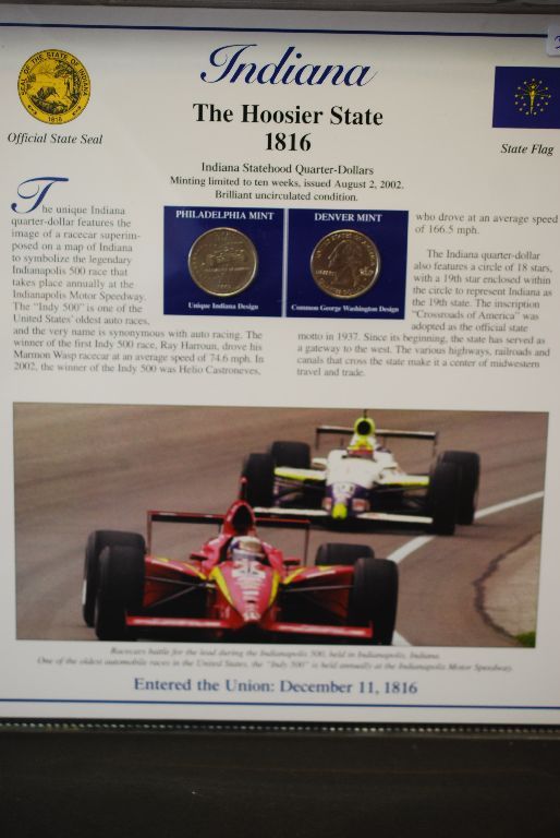 2002 Indiana State Quarter Coin Set W/US Postal Stamps; P&D Mints; EST. $5-10