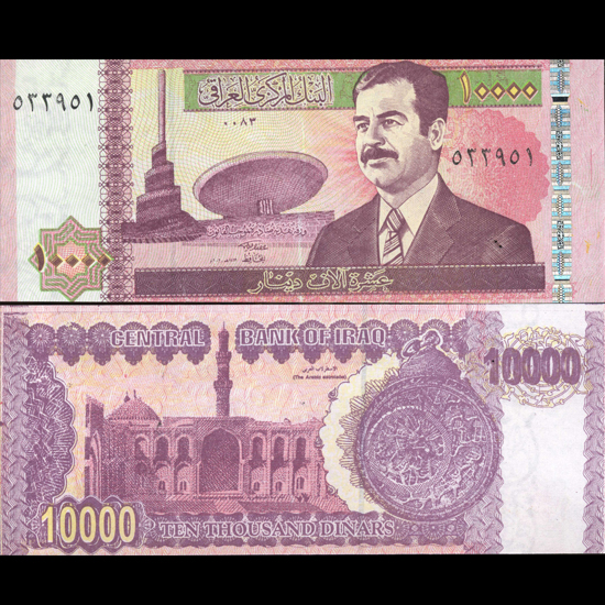 Scarce last of Saddam hi denomination issue; crisp unc