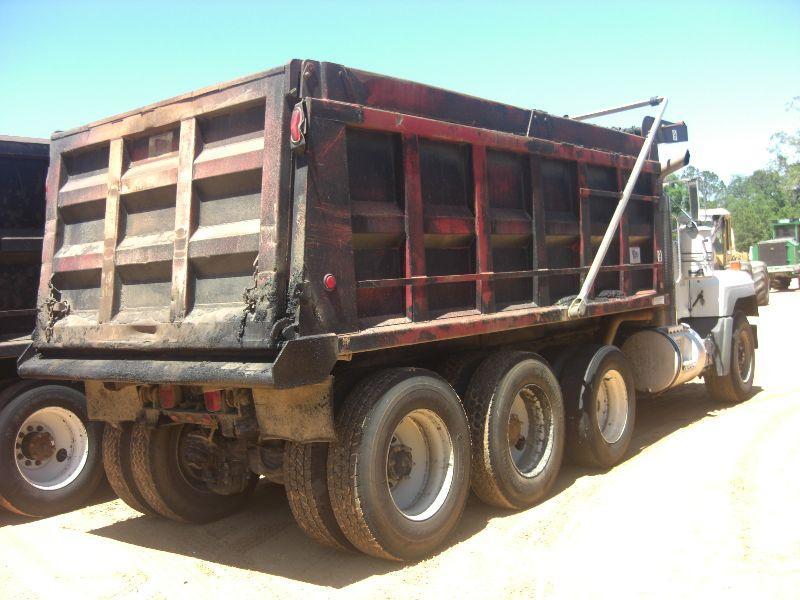 2002 MACK RD688S TRI-AXLE DUMP, S/N 1M2P267C42M064447, E7-350 MACK ENG, 8LL TRANS, 44K REARS, 18K FRONT, A/C, P/S, ENGINE BRAKE, DOUBLE FRAME, 16' OX DUMP BODY, ELEC TARP, 11R24.5 REAR TIRES, 385/65R22.5 FRONT TIRES, DISC WHEELS