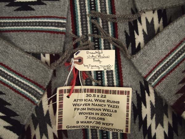 Gorgeous 2002 Native American Navajo Atypical Wide Ruins Rug by Nancy Yazzie of Indian Wells, measures 28'' x 30.5''