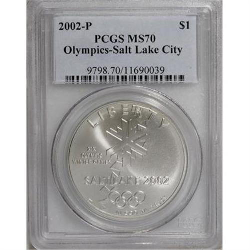 <B>2002-P $1 Olympics Silver Dollar MS70 PCGS.</B></I> PCGS Population (62/0). NGC Census: (0/0). Numismedia Wsl. Price for NGC/PCGS coin in MS70: $120. (#9798)<BR><BR><b>Shipping:</b> Coins & Currency (<a target="_blank" href="http://www.heritageauctions.com/common/shipping.php">view shipping information</a>)