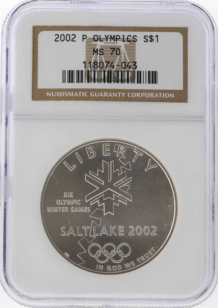 One 2002-P $1 Salt Lake Olympics Silver Coin NGC MS70. NGC Certified.