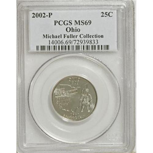 <B>2002-P 25C Ohio MS69 PCGS.</B></I> Michael Fuller Collection. PCGS Population (40/0). NGC Census: (4/0). Numismedia Wsl. Price for NGC/PCGS coin in MS69: $200. (#14006)<BR><BR><b>Shipping:</b> Coins & Currency (<a target="_blank" href="http://www.heritageauctions.com/common/shipping.php">view shipping information</a>)