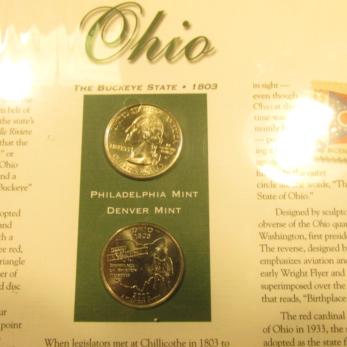 2002 P & D Ohio Fleetwood cover with Ohio Statehood Pair of Quarters, complete in original packaging.