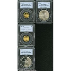 <B>2002-P<img border='0' src='http://www.heritagecoins.com/images/star.gif' width=10 height=10>$1 Olympics MS69 PCGS; 2002-P Olympics Dollar PR69 Deep Cameo PCGS; 2002-W Olympics Five Dollar MS69 PCGS;</B></I> and a <B>2002-W Olympics Five Dollar PR69 Deep Cameo PCGS,</B></I> all are fully brilliant and pristine as issued. A beautiful set of Winter Olympics coinage. 4 Coins Lot:10757