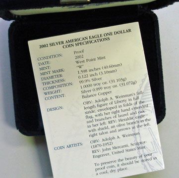 THE COLLECTABLE VERSION OF THE SILVER EAGLE, EST. $75.00 TO $85.00
