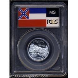 <table><tr><td><TABLE cellSpacing=0 cellPadding=0 width="100%" bgColor=#000000 border=0><TBODY> <TR><TD width="100%"><TABLE cellSpacing=1 cellPadding=3 width="100%" border=0><TBODY><TR><TD width="100%" bgColor=#79735c><FONT face=arial color=#ffffff size=3><B>Description</B> </FONT></TD></TR><TR><TD width="100%" bgColor=#ffffff><FONT face=arial size=2><B>2002-S 25C Mississippi Silver PR70 Deep Cameo PCGS.</B></I> Brilliant throughout with heavily frosted devices. Housed in a State Seal holder. </FONT></TD></TR></TBODY></TABLE></TD></TR></TBODY></TABLE><BR><A name=PricesRealized></A><TABLE cellSpacing=0 cellPadding=0 width="100%" bgColor=#000000 border=0><TBODY><TR><TD width="100%"><TABLE cellSpacing=1 cellPadding=3 width="100%" border=0><TBODY><TR><TD width="100%" bgColor=#79735c><A name=PR><FONT face=arial color=#ffffff size=3><B>Previous Prices from Heritage Auctions</B> </FONT></A></TD></TR><TR><TD bgColor=#f6f6ed>No Prior Data Recorded </TD></TR><TR><TD bgColor=#ffffff><FONT face=arial size=1 ?>PLEASE NOTE: All prices realized reflect the final hammer price PLUS the buyer's premium in auctions that charge a buyer's premium. Each item has a notation at the top of the listing indicating whether that lot included a buyer's premium. Example: A item that sells with a final hammer price of $100 and a 20% buyer's premium will display with a price realized of $120. All information listed is intended to be as accurate as possible, but errors are possible. Please use this guide carefully and inform us of any inaccuracies. </FONT></TD></TR></TBODY></TABLE></TD></TR></TBODY></TABLE><BR><TABLE cellSpacing=0 cellPadding=0 width="100%" bgColor=#000000 border=0><TBODY><TR><TD width="100%"><TABLE cellSpacing=1 cellPadding=3 width="100%" border=0><TBODY><TR><TD width="100%" bgColor=#79735c colSpan=6><FONT face=arial color=#ffffff size=3><B>Price Guide*</B> </FONT></TD></TR><TR bgColor=#f6f6ed><TD align=middle><B>Grade</B> </TD><TD align=middle><B>Coin World<BR>(Trends)</B> </TD><TD align=middle><B>Numismedia<BR>Retail</B> </TD><TD align=middle><B>Numismedia<BR>Wholesale</B> </TD><TD align=middle><B>Coin<BR>Universe</B> </TD><TD align=middle><B>Heritage<BR>Value Index</B> </TD></TR><TR bgColor=#ffffff><TD align=middle>69</TD><TD align=right>---</TD><TD align=right>---</TD><TD align=right>---</TD><TD align=right>---</TD><TD align=right>($1.00)</TD></TR><TR style="FONT-WEIGHT: bold" bgColor=#cccfdd><TD align=middle>70</TD><TD align=right>---</TD><TD align=right>---</TD><TD align=right>---</TD><TD align=right>$1,650.00</TD><TD align=right>($1.00)</TD></TR><TR bgColor=#ffffff><TD colSpan=6><FONT size=1>*All information listed is intended to be as accurate as possible, but errors are possible. No item may be returned or refused based on this information which is provided as a service to our customers. You should contact each pricing source directly to determine the accuracy of this information. </FONT></TD></TR></TBODY></TABLE></TD></TR></TBODY></TABLE><BR><TABLE cellSpacing=0 cellPadding=0 width="100%" bgColor=#000000 border=0><TBODY><TR><TD width="100%"><TABLE cellSpacing=1 cellPadding=3 width="100%" border=0><TBODY><TR><TD width="100%" bgColor=#79735c><FONT face=arial color=#ffffff size=3><B>Population Guide</B> </FONT></TD></TR><TR bgColor=#ffffff><TD align=middle><!-- Begin Output of Population Grid--><TABLE cellSpacing=0 cellPadding=0 width="100%" border=0><TBODY><TR><TD vAlign=center><TABLE cellSpacing=0 width="100%" border=1 cellsadding="3"><TBODY><TR><TD vAlign=center><TABLE cellSpacing=0 cellPadding=3 width="100%" border=1><TBODY><TR><TD vAlign=center align=middle bgColor=#f0f1e8 colSpan=2 <CENTER><FONT face=Arial size=2><B>PCGS Pop </B></FONT><CENTER></CENTER></TD><TD vAlign=center align=middle bgColor=#f0f1e8 colSpan=2><CENTER><FONT face=Arial size=2><B>NGC Pop</B></CENTER></FONT></TD></TR><TR><TD vAlign=center><FONT face=Arial size=2>(70)</FONT> </TD><TD vAlign=center align=right><FONT face=Arial size=2>6</FONT> </TD><TD vAlign=center><FONT face=Arial size=2>(70)</FONT> </TD><TD vAlign=center align=right><FONT face=Arial size=2>0</FONT> </TD></TR><TR><TD vAlign=center><FONT face=Arial size=2>(>70)</FONT> </TD><TD vAlign=center align=right><FONT face=Arial size=2>0</FONT> </TD><TD vAlign=center><FONT face=Arial size=2>(>70)</FONT> </TD><TD vAlign=center align=right><FONT face=Arial size=2>0</FONT> </TD></TR></TBODY></TABLE></TD></TR></TBODY></TABLE></TD></TR></TBODY></TABLE><!-- End Output of Population Grid--></TD></TR></TBODY></TABLE></TD></TR></TBODY></TABLE><BR><TABLE cellSpacing=0 cellPadding=0 width="100%" bgColor=#000000 border=0><TBODY><TR> Important notice: Heritage usually auctions material at the rate of 200-250 lots per hour. On some occasions eBay Live bid software or the Internet may not be able to keep up with the pace of the auction. We recommend placing a realistic absentee bid now as insurance to avoid disappointment. Occasionally the auctioneer may eliminate or reject an eBay Live bid, and the auctioneer may also reopen a lot after the close of the eBay live bidding (usually because we missed an audience bid), and may reject your bid even if it shows you as the winning bidder. By bidding via eBay Live, you agree that Heritage may award the lot to another bidder at its sole discretion under the circumstances described above or any other reasonable circumstances. Also please note that all Heritage lots purchased through eBay Live carry a 20% Buyer's Premium. Please make sure you read the Terms and Conditions before you bid.</TD></TR></TBODY></TABLE></TD></TR></TBODY></TABLE>