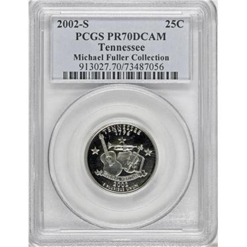 <B>2002-S 25C Tennessee Clad PR70 Deep Cameo PCGS.</B></I> Michael Fuller Collection. PCGS Population (59/0). NGC Census: (0/0). Numismedia Wsl. Price for NGC/PCGS coin in PR70: $280. (#913027)<BR><BR><b>Shipping:</b> Coins & Currency (<a target="_blank" href="http://www.heritageauctions.com/common/shipping.php">view shipping information</a>)