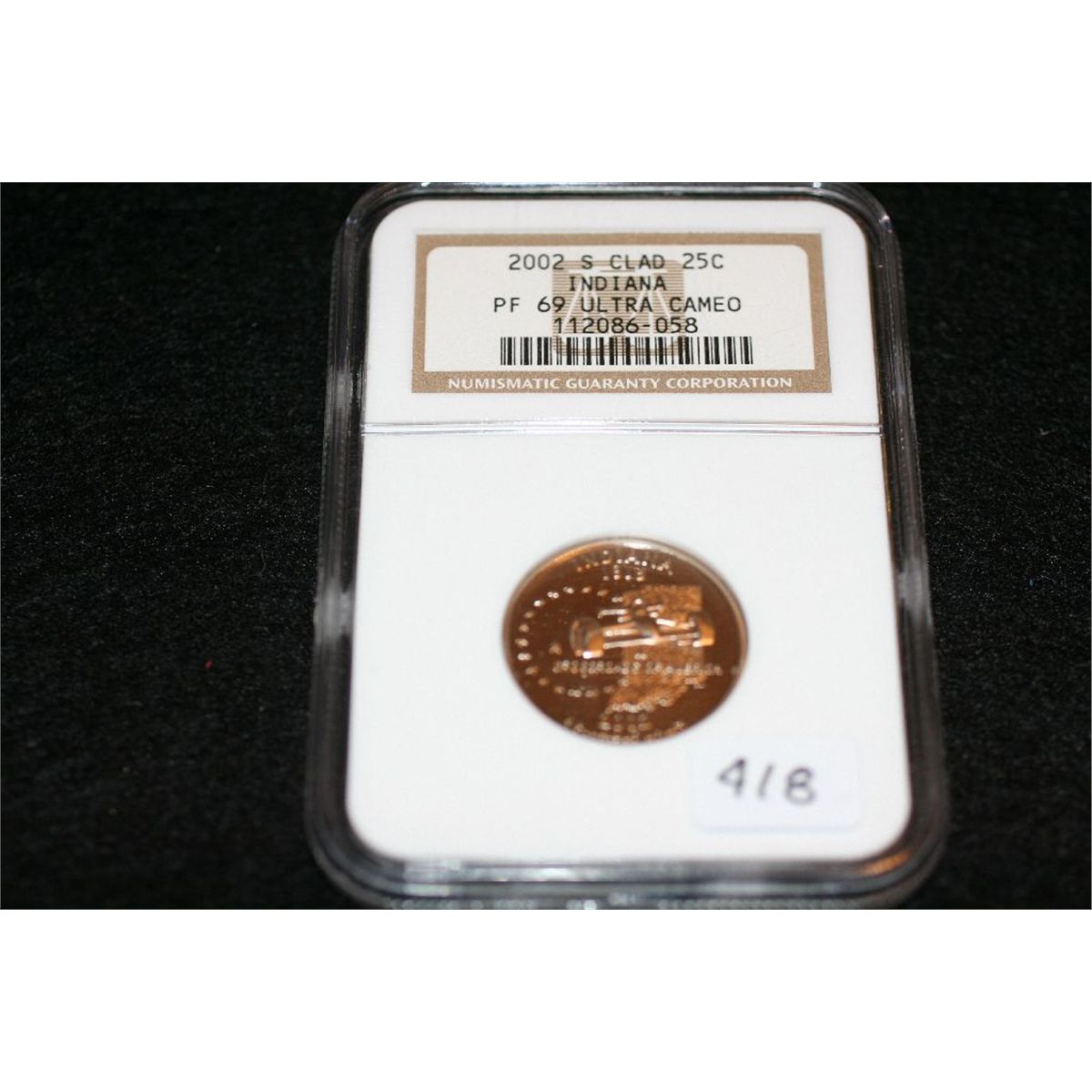 2002-S Indiana State quarter, CLAD, NGC graded, PF69 Ultra Cameo
