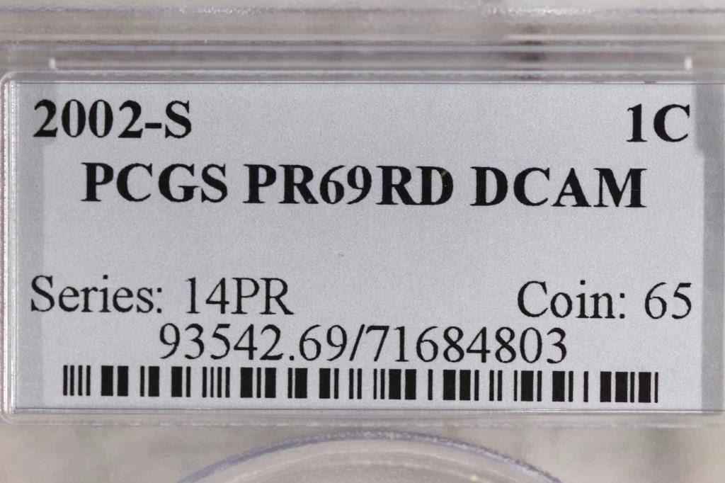 2002-S LINCOLN CENT PCGS PR69RD DCAM