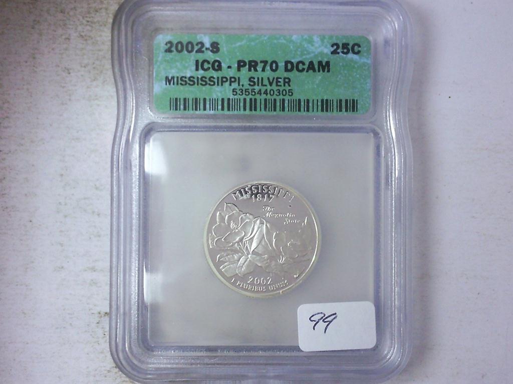 2002-S SILVER MS QUARTER ICG PR70DCAM