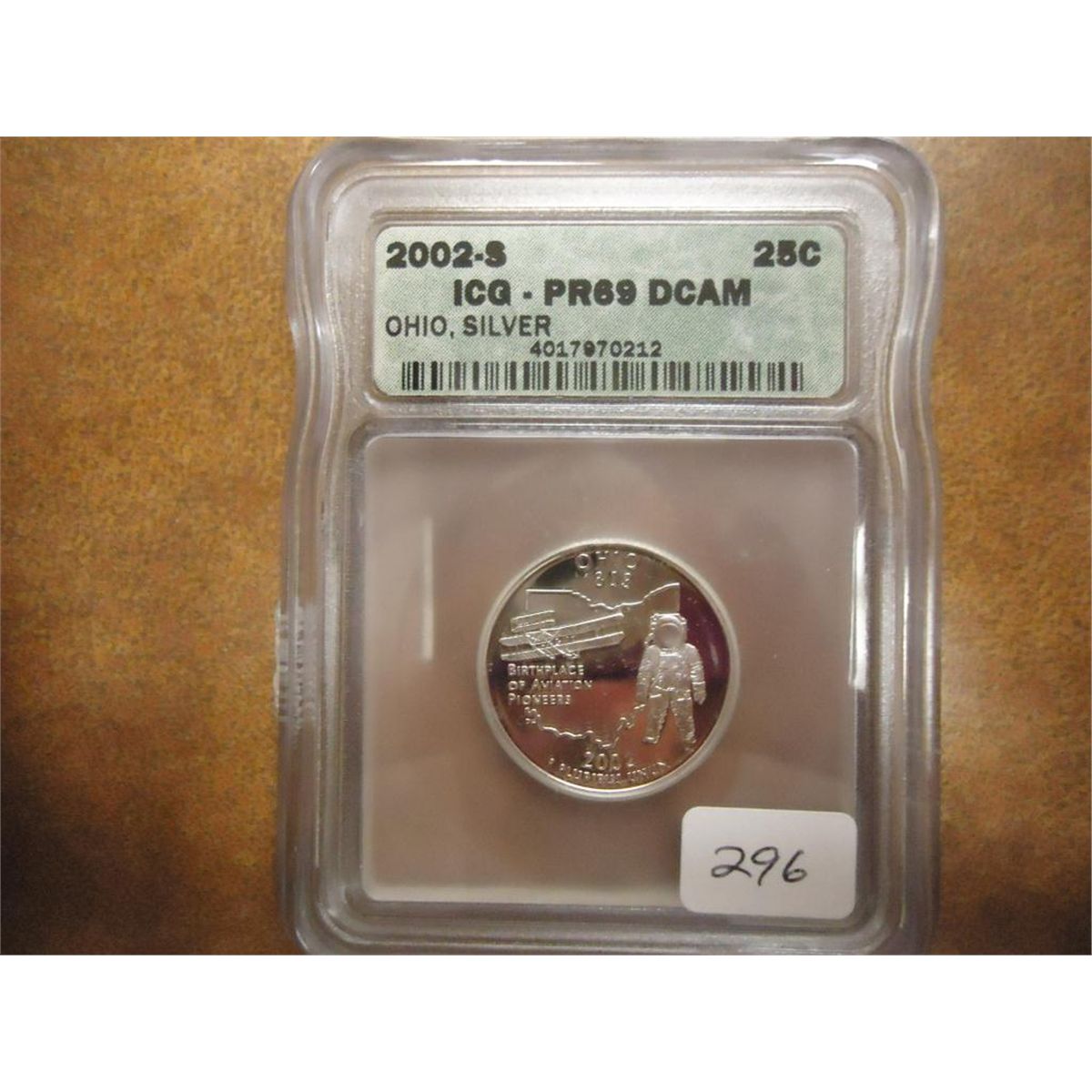 2002-S SILVER OHIO QUARTER ICG PR69 DCAM