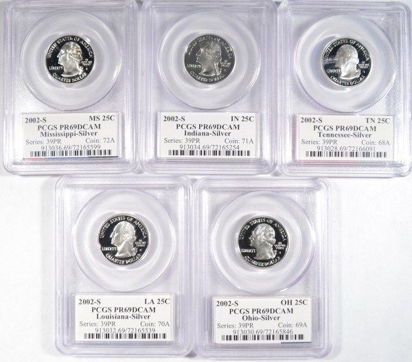 AN OUTSTANDING SET OF THESE PROOF STATE SILVER QUARTERS, EST $50.00 TO $55.00