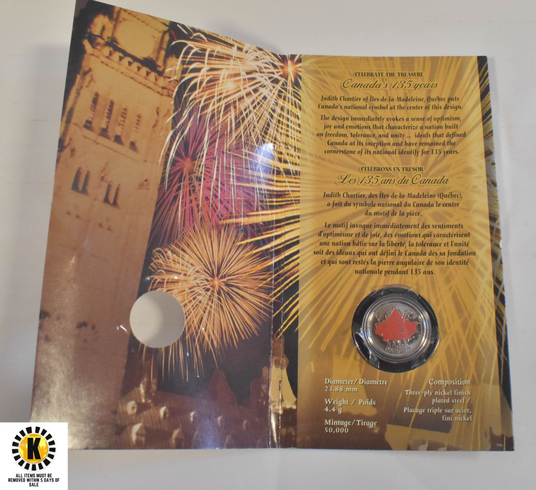 2002 SPECIAL ISSUE 135 YRS CANADA 25 CENTS COIN