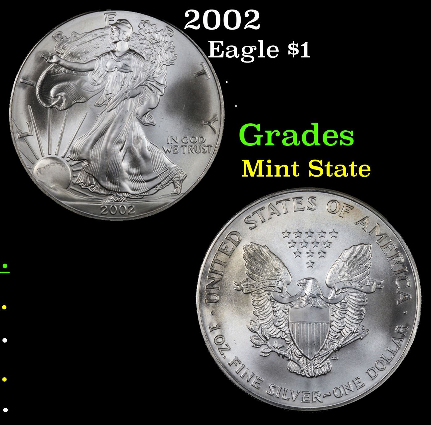 2002 Silver Eagle Dollar $1 Grades Mint State.