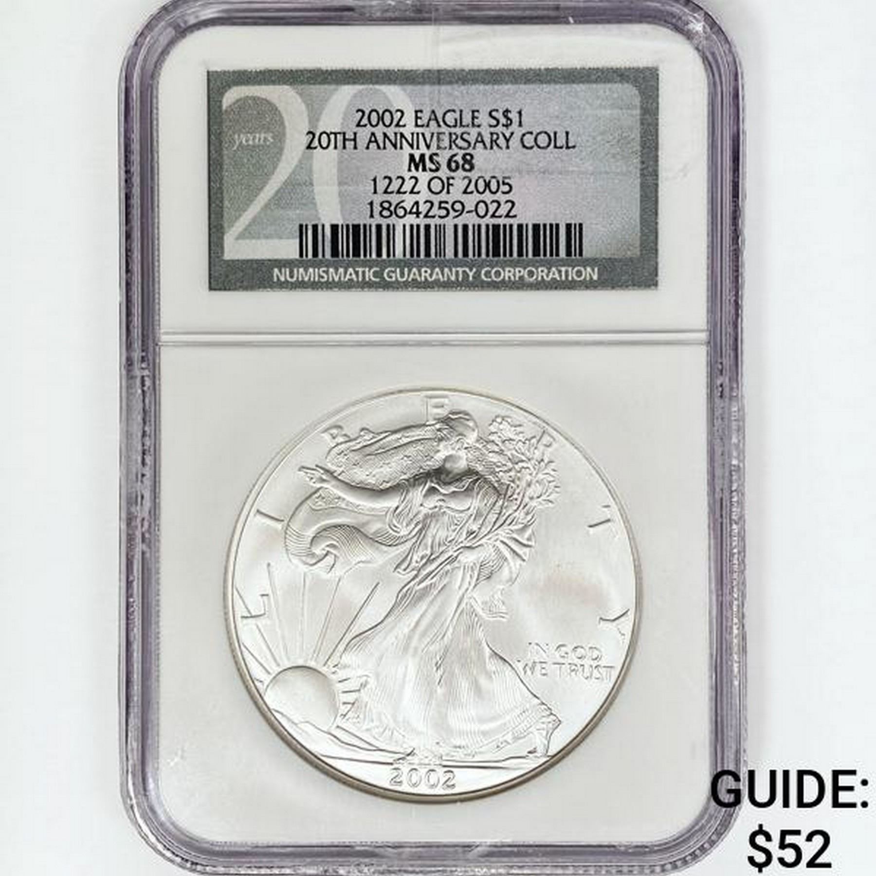 2002 Silver Eagle NGC MS68 20th Anniv Collect