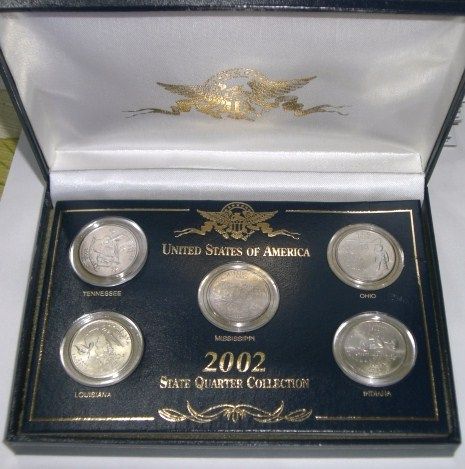 2002 State Quarter Collection in Original Display Box *STATES ARE TN, LA, MS, OH & IN - NICE SET*!!