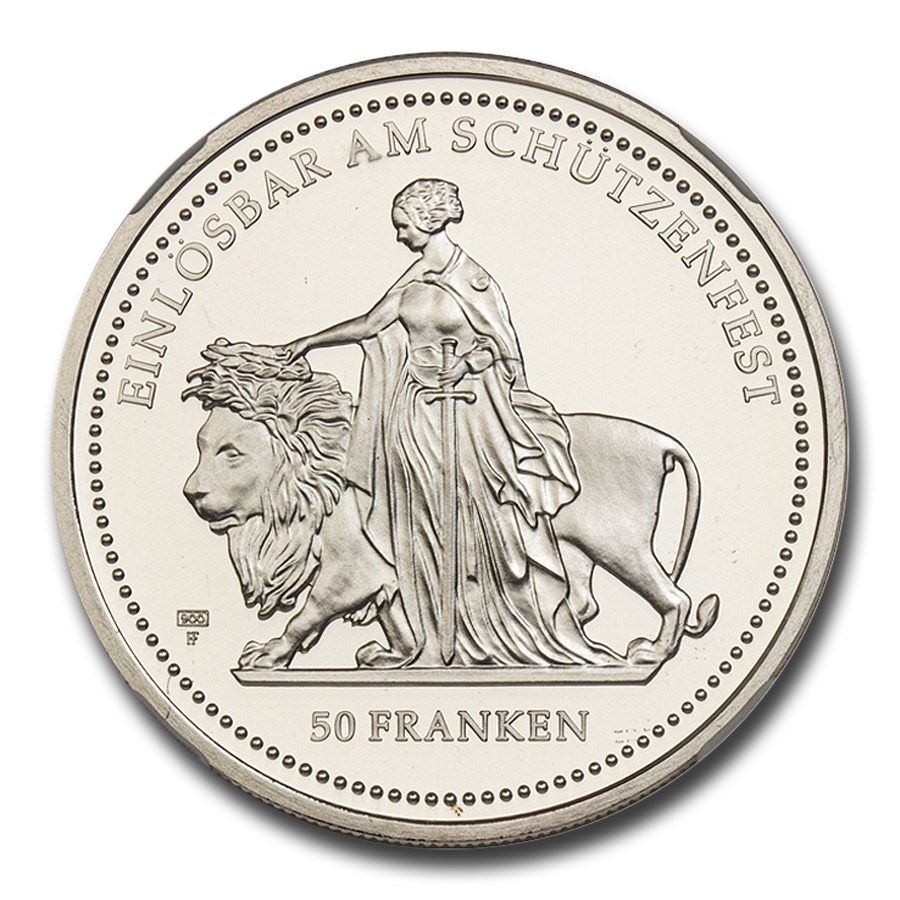 2002 Switzerland Silver 50 Francs Una & the Lion PF-68 UCAM NGC