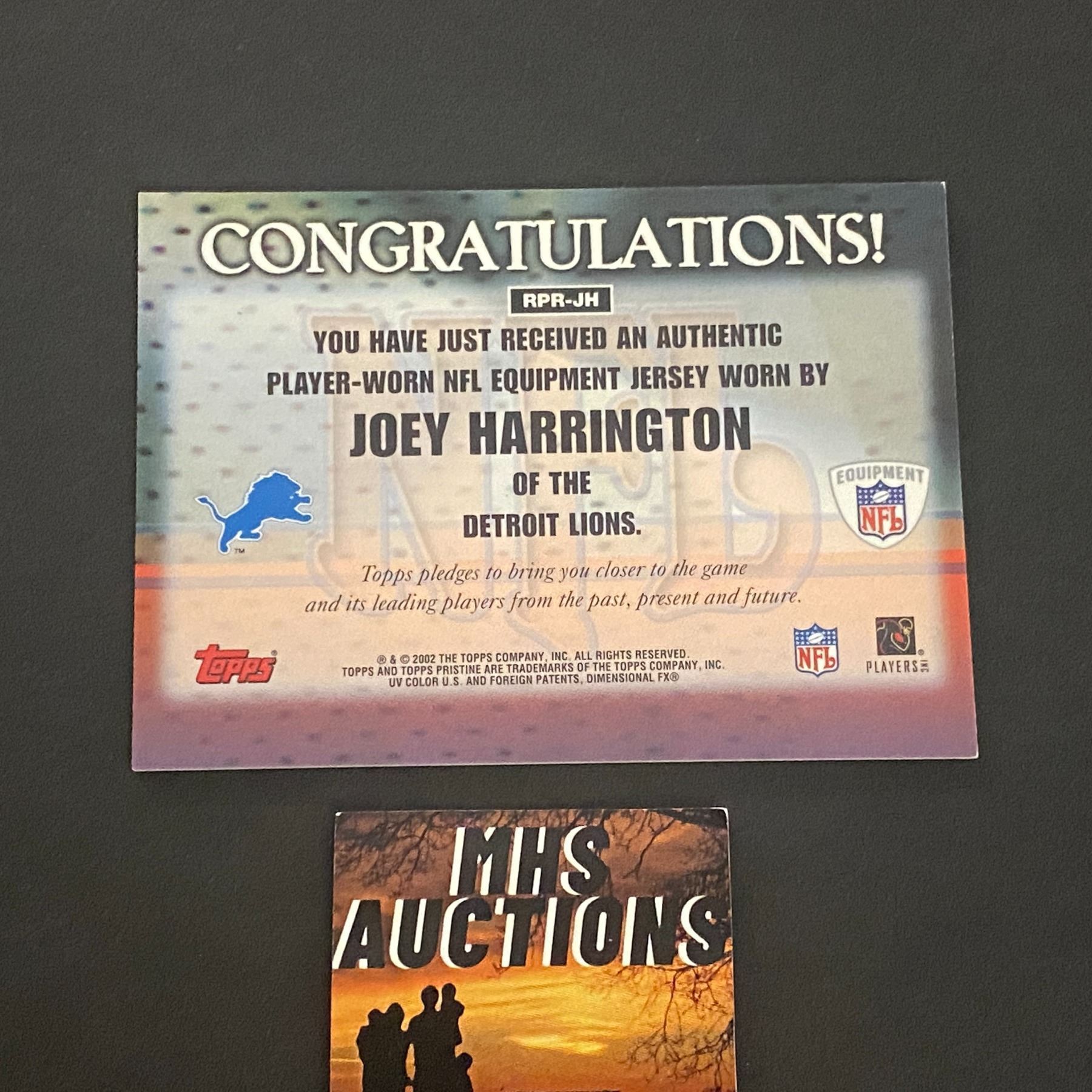 2002 TOPPS JOEY HARRINGON JERSEY CARD