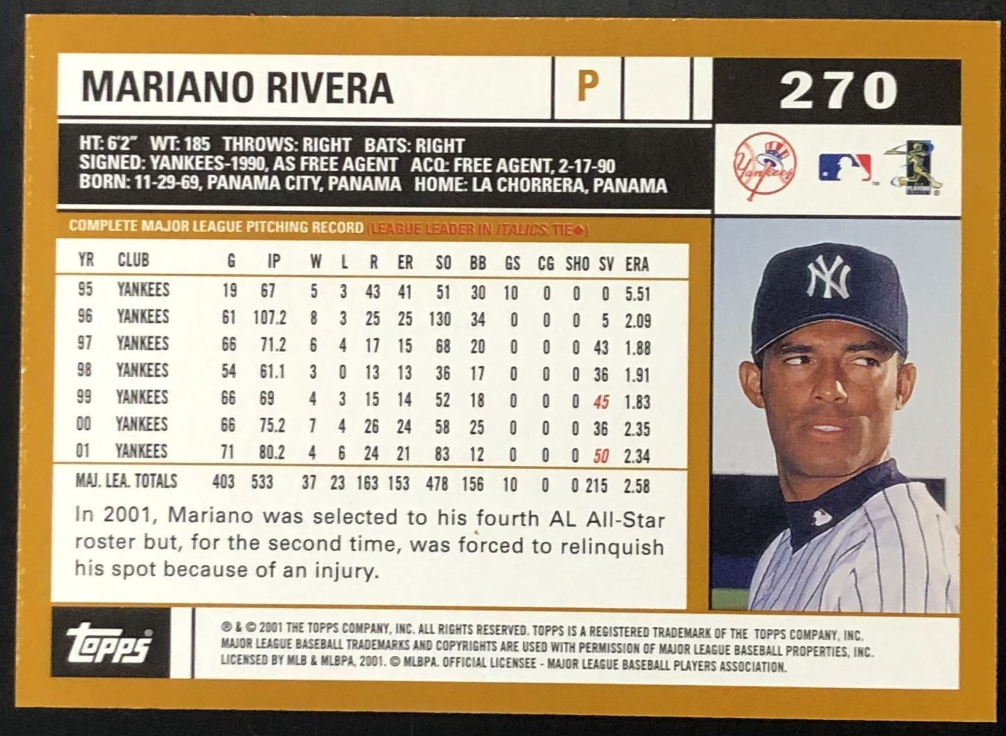 Card #270 MLB, baseball, hall of fame