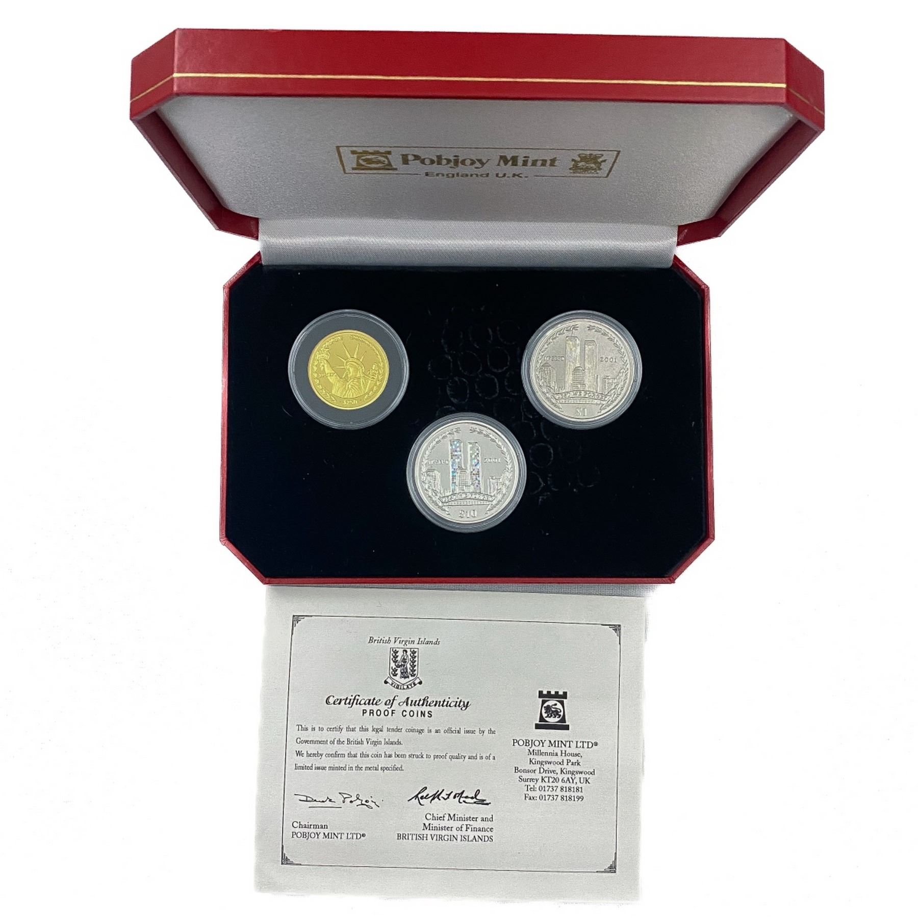 2002 UK Gold (1/2oz AGW) & Silver 9/11 Set (3 Coin