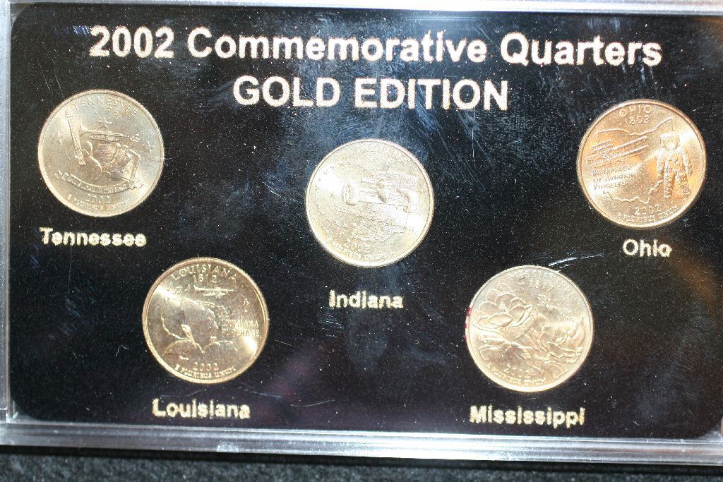 2002 US State Commerative Quarter Mint Set, Gold Edition, 24K Gold Layered, P&D Mints, BU