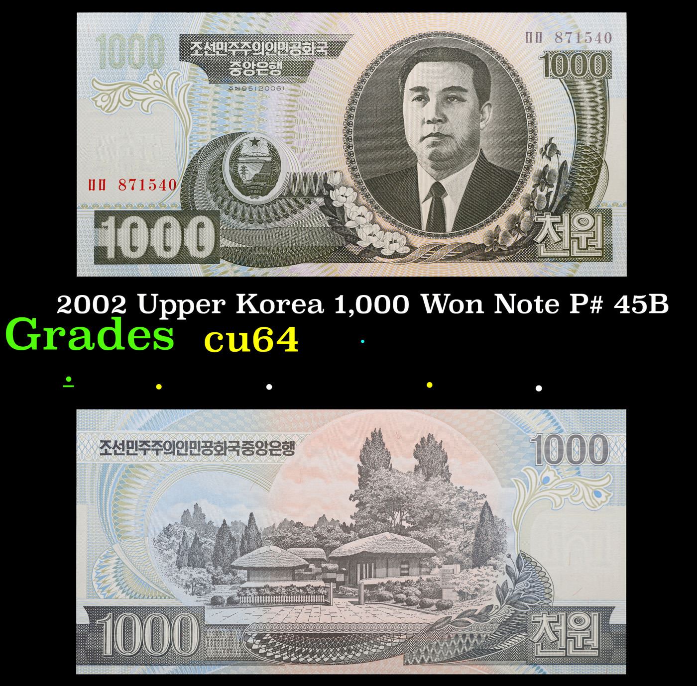 2002 Upper Korea 1,000 Won Note P# 45B Grades Choice CU