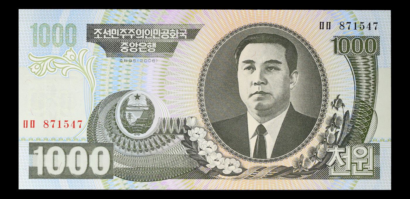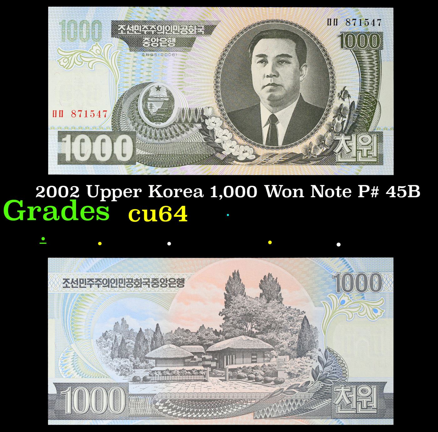2002 Upper Korea 1,000 Won Note P# 45B Grades Choice CU.