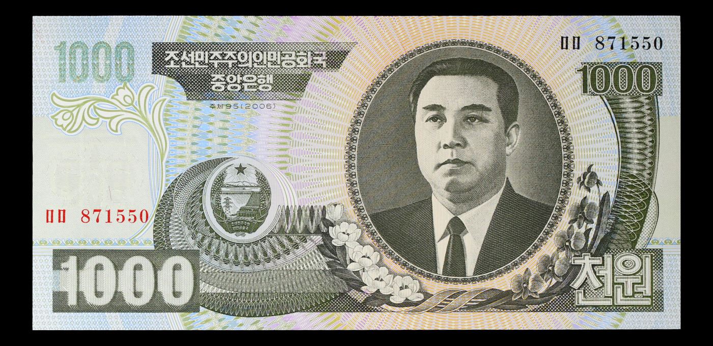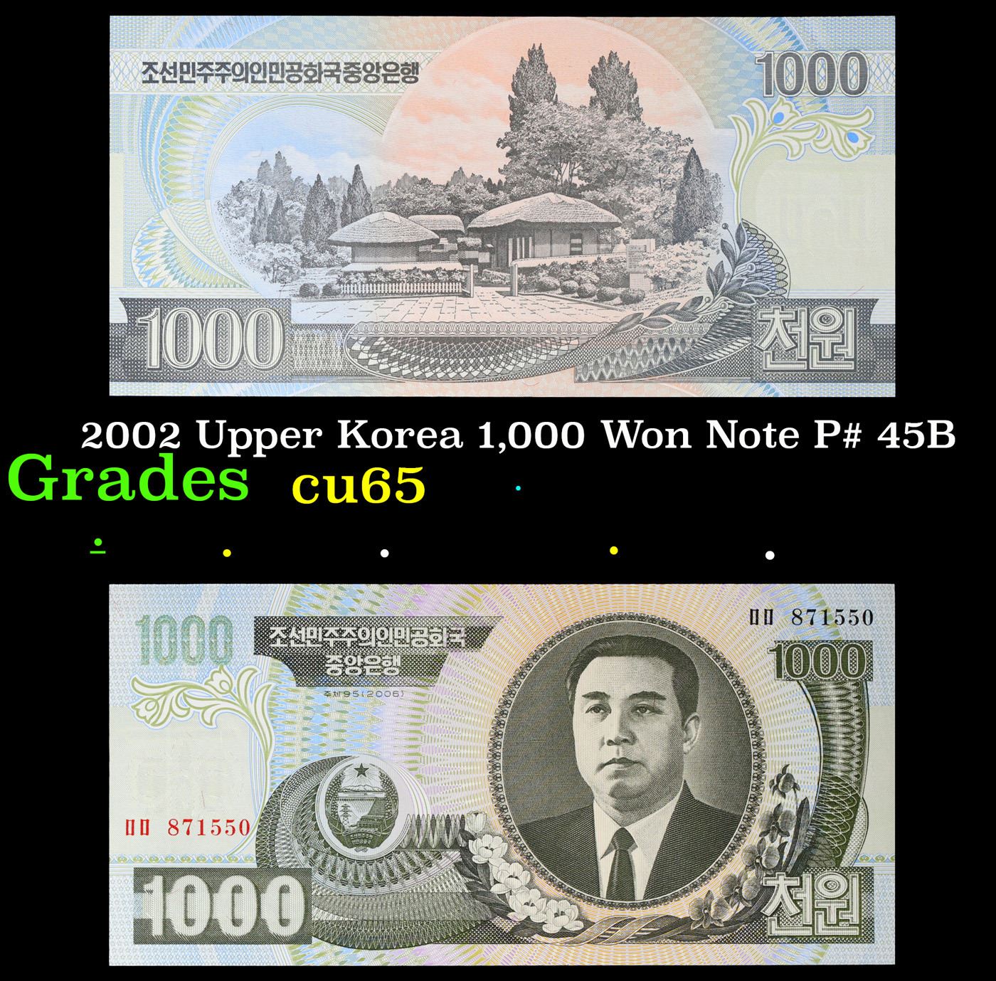 2002 Upper Korea 1,000 Won Note P# 45B Grades Gem CU.
