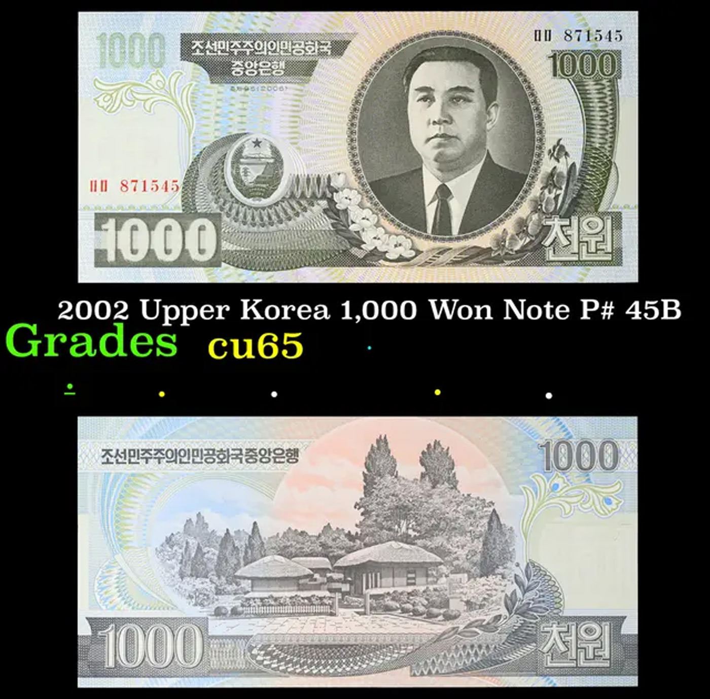 2002 Upper Korea 1,000 Won Note P# 45B Grades Gem CU