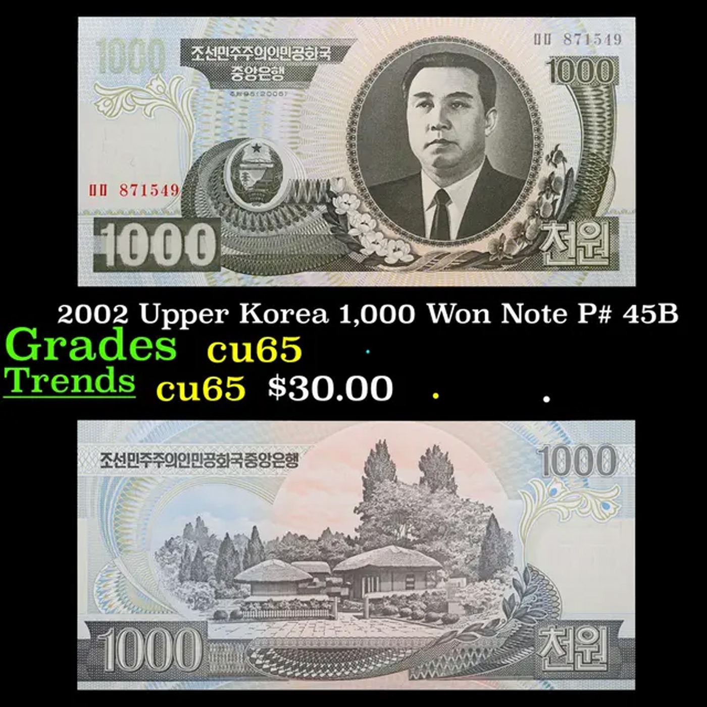 2002 Upper Korea 1,000 Won Note P# 45B Grades Gem CU