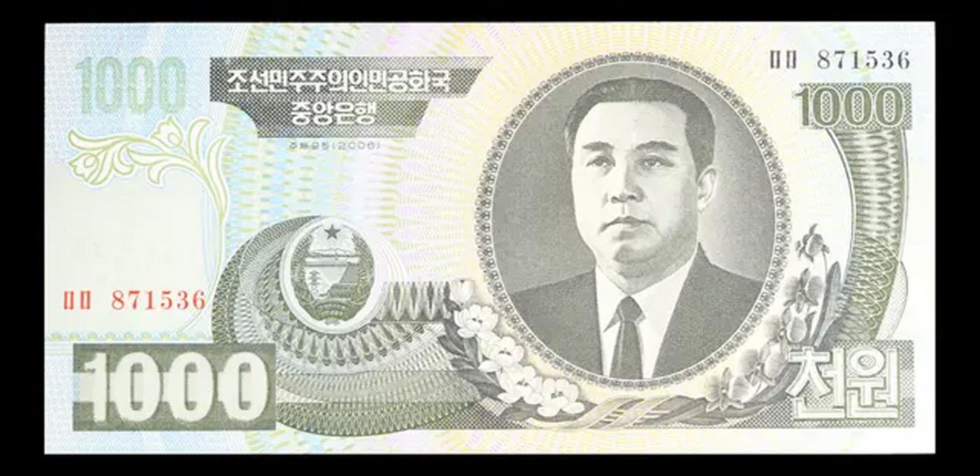 2002 Upper Korea 1,000 Won Note P# 45B Grades Gem+ CU